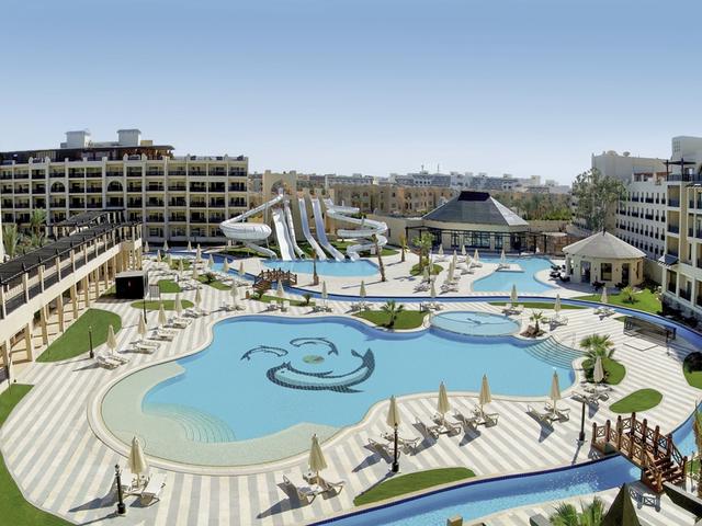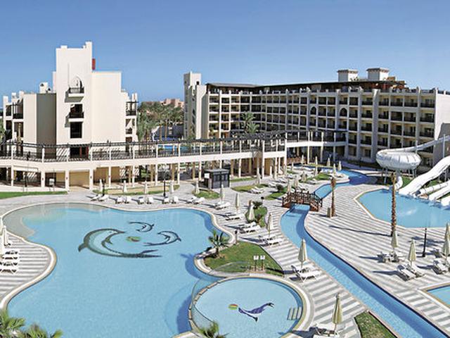 Ausstattung: Große Poollandschaft mit 7 Süßwasserswimmingpools, Wasserpark mit 6 Rutschen (Mindestgröße 120 cm) u. 'Lazy River', Relaxpool auf der Dachterrasse (ab 18 J.), Liegen, Auflagen, Sonnenschirme u. Badetücher am Pool u. am Strand, Pool- und Strandbar. Rezeption, Lobby, WLAN im ges. Hotel inkl., Buffetrestaurant, 3 À-la-carte-Restaurant, diverse Bars, traditioneller Markt mit Shops. Landeskat.: 5 Sterne, 718 Zimmer.