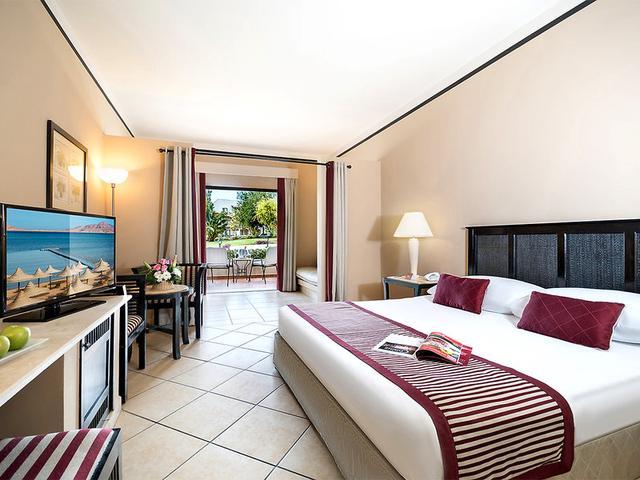 Wohnen: Superior-Zimmer (DSP, ca. 36 qm), Klimaanlage, Minibar, Safe. Dusche, WC, Föhn. Balkon/Terrasse mit Gartenblick, wahlweise Meerblick (DSM). Max. 2E+1K