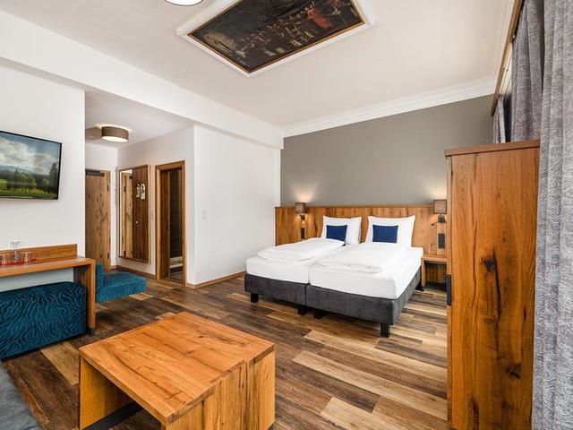 [4B01] Standard Vierbettzimmer: mind. 24 m², Zimmerkategorie: Standard, Zimmertyp: Vierbettzimmer, Anzahl der Räume: Wohnschlafraum 1x, Badezimmer 1x, Anzahl der Betten: Doppelbett 1x, Schlafsofa für 2 Personen 1x, Gitterbett als Überbelegung möglich: Nein, Allgemein: Safe, Heizung, Minibar - optional gegen Gebühr vor Ort, Badezimmer: WC, Haarfön, Dusche, Bademantel - gebührenfrei, Medien & Technik: Telefon, TV, WLAN/WIFI Internetanschluss - gebührenfrei