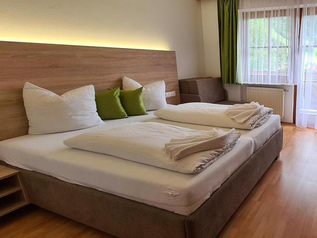 [FR01] Comfort Familienzimmer Balkon Bergblick: mind. 32 m², Zimmerkategorie: Comfort, Zimmertyp: Familienzimmer, Anzahl der Räume: Schlafraum 2x, Badezimmer 1x, Anzahl der Betten: Doppelbett 1x, Etagenbett 1x, Gitterbett als Überbelegung möglich: Ja, Allgemein: Balkon, Badezimmer: WC, Dusche, Rollstuhlgerecht, Wohnbereich: Sitzecke, Medien & Technik: TV, WLAN/WIFI Internetanschluss - gebührenfrei, Zimmerausblick: Bergblick seitlich