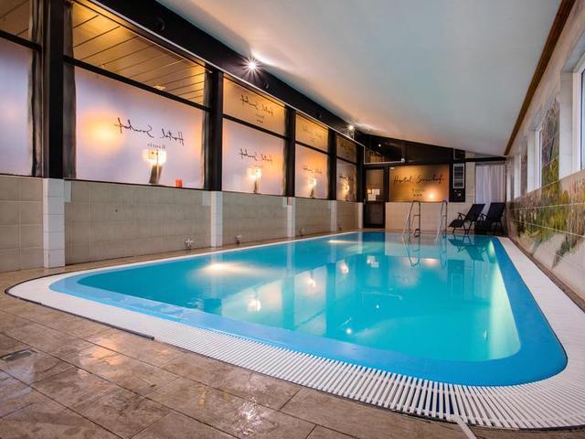 Wellness und Fitness: Größe Wellnessbereich 90 m², Hallenbad 32 m², Saunabereich: Kinder ab 14 Jahren. Nur in Begleitung eines Erwachsenen - gebührenfrei, Finnische Sauna, Ruheraum, Solarium - optional gegen Gebühr vor Ort, Garten, Liegewiese, Liegestühle - gebührenfrei, Sonnenschirme - gebührenfrei