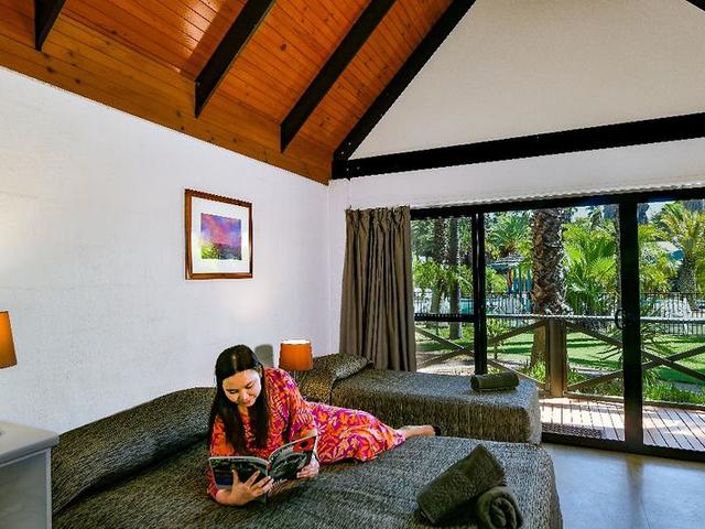 Das Resort liegt befindet sich am Fluss Todd und bietet Ausblick über die wunderschöne MacDonnell-Bergkette. Es liegt nur etwa 1 km vom Stadtzentrum und rund 300 m vom Lasseter's Casino entfernt. Der Alice Springs Flughafen befindet sich rund 12 km von der Unterkunft entfernt. Das 80-Villen-Resort liegt wie ein tropisches Paradies inmitten der heißen Wüste. Die komfortablen Villen bieten Klimaanlagen und Küchenzeilen sowie private Veranden, die in einer Oase von bezaubernden Palmen und üppigen Bougainvillea-Pflanzen liegen. Es wird ein Wäscheservice angeboten. Die Villen im Resort sind mit Badezimmer, Haartrockner, Direktwahltelefon, Sat.-/Kabel-TV, Breitbandinternet, Wecker, Radiouhr, Bügelset, Barkühlschrank, Küchenzeile, Mikrowelle und Tee-/Kaffeezubereiter ausgestattet. Jede Villa besitzt zudem eine individuell regulierbare Klimaanlage sowie Balkon oder Terrasse. Die Gäste können im Außenpool des Resorts ein paar Runden schwimmen oder eine Partie Tennis auf den resorteigenen Plätzen spielen. In etwa 10 Gehminuten Entfernung vom Hotel liegt der Golfplatz des Resorts.