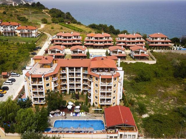 Das Hotel liegt nahe der Stadt Byala an dem schönen Kap Saint Atanas, wo Überreste eines antiken Dorfs gefunden wurden. Von Byala verkehren täglich Busse nach Varna, Burgas, Sonnenstrand (ca. 35 km) und zur historischen Altstadt von Nessebar. Byala liegt unweit von Obzor (ca. 2 km). In Obzor befinden sich zahlreiche Diskotheken und viele Restaurants. Die Hotelanlage wurde 2010 gebaut und umfasst ein großes Wohngebäude mit Doppelzimmern und Apartments sowie einige teilweise freistehende Villen. Alle 85 Zimmer bieten schöne Blicke auf das Meer. Zur Einrichtung gehören ein Hauptrestaurant, eine Terrasse mit Meerblick, eine Lobbybar, eine Skybar, eine Poolbar, ein Café sowie ein Spielbereich und ein Spielplatz für Kinder. Das klimatisierte Haus verfügt über einen Empfangsbereich, in dem sich die 24h-Rezeption mit Check-out-Service befindet, und über einen Hotelsafe, eine Wechselstube, Aufzüge und WLAN-Internetzugang (gegen Gebühr). Gegen eine Gebühr können die Gäste den Wäscheservice nutzen. Neben der Anlage gibt es einen Parkplatz (gegen Gebühr). Jedes Zimmer ist mit einem Sat.-TV, einem Kühlschrank, einer individuell regulierbaren Klimaanlage und Heizung sowie einem eigenen Badezimmer/WC mit Dusche und Haartrockner ausgestattet. Die Apartments bestehen aus einem Schlafzimmer und einem 2. Schlafzimmer mit 2 normalen Betten und einem ausziehbaren Sofa für 2 Personen. Die Villen haben ein geräumiges Wohnzimmer und 3 Schlafzimmer sowie 3 Badezimmer. Sie haben 6 normale Betten und ein ausziehbares Sofa für 2 Personen im Wohnzimmer. Jede Villa hat einen großen Balkon, eine Klimaanlage, ein Sat.-TV und eine Kochnische. Von jeder Villa hat man einen schönen Blick auf das Meer. Ein Direktwahltelefon und Internetzugang sind in allen Wohneinheiten vorhanden.