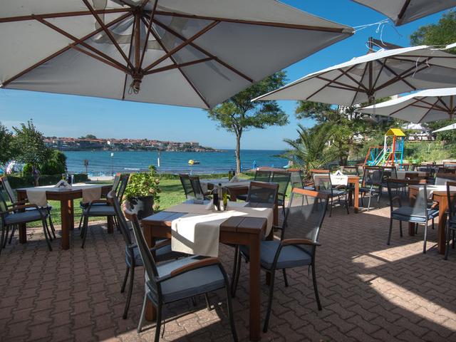 Allgemeine Beschreibung:Rund 100 m vom Strand entfernt gelegenes Hotel. Die Stadt Burgas ist ca. 35 km entfernt. Einkaufsmöglichkeiten liegen ca. 250 m vom Hotel, ein Supermarkt ist nach ca. 100 m zu erreichen. Zu den nächsten Bars und Restaurants gelangt man nach rund 200 m. Zur nächsten Diskothek gelangt man nach rund 500 m. Weitere Unterhaltungsangebote wie ein Kino sind in ca. 1 km Entfernung zu finden. Folgende Sehenswürdigkeiten sind vom Hotel aus erreichbar: Diving (ca. 400 m), Aqua park (ca. 3 km), The Castle of Ravadinovo Bulgaria - In Love with the Wind (ca. 3 km) und Archeological Museum (ca. 500 m). Für Mobilität im Urlaub sorgen neben einem Mietwagen-Verleih auch ein Taxistand (ca. 200 m) und eine Bushaltestelle (ca. 500 m entfernt). Weiter entfernt gelegene Orte lassen sich über den Bahnhof in rund 35 km Entfernung erreichen. Der Flughafen (BOJ) ist ca. 44 km entfernt. Zwischen Hotel und Flughafen verkehrt (gegen Gebühr) ein Shuttle. Ein weiterer Flughafen (VAR) liegt in etwa 168 km Entfernung. Ausstattung:Das 2024 zuletzt teilrenovierte Strandhotel verfügt über insgesamt 58 Zimmer. Es bietet seinen Gästen eine Rezeption (Check In ab 14:30 Uhr, Check out bis 11:00 Uhr), eine Lobby mit Bar, einen Lift, eine Klimaanlage, einen Safe (gegen Gebühr), einen Parkplatz (gegen Gebühr) sowie ein Security Entry System. Für das leibliche Wohl sorgt ein Restaurant. WLAN steht den Hotelgästen kostenlos zur Verfügung. Weiterhin bietet das Hotel einen Konferenzbereich. Für Gäste, die auf einen Rollstuhl angewiesen sind, bietet das Hotel teilweise rollstuhlgerechte Badezimmer und barrierefreie Zugänge. Zimmer-Service und Wäsche-/Bügel-Service sind gegen Gebühr. Schwimmbad:Zum Außenbereich des modernen Hotels gehört ein Frischwasser-Pool (ca. 39 m²) mit einem separaten Kinderbecken. Hier stehen Sonnenliegen und Sonnenschirme kostenlos zur Verfügung. Verpflegung:Frühstück vom Buffet. Sport/Freizeit:Sport- und Unterhaltungsangebote: Fitness (08:00 - 22:00 Uhr, kostenlos) und Billard (geg. Gebühr). Wellness: Sauna, Solarium und Massagen gegen Gebühr. Zusätzliche Informationen:Für bestimmte Einrichtungen oder Aktivitäten können zusätzliche Gebühren anfallen. Einige Dienstleistungen hängen von der Jahreszeit und den lokalen klimatischen Bedingungen ab. Servicesprachen: englisch, deutsch und russisch. Kreditkarten: Euro/MasterCard und Visa. Einzelbelegung Standard Zimmer (Balkon oder Terrasse):Die komfortabel eingerichteten Zimmer sind ausgestattet mit Twinbett, Extrabett (Zustellbett), Babybett (geg. Gebühr), Teppichboden, Minibar (geg. Gebühr), Balkon und Internet (ggf. geg. Gebühr) sowie zentral gesteuerter Klimaanlage. Badezimmer mit Dusche (Größe: 23 m²). Handtücher werden 2x pro Woche gewechselt. Die Bettwäsche wird 2x pro Woche gewechselt. Einzelbelegung Standard Zimmer (Meerblick, Balkon oder Terrasse):Die komfortabel eingerichteten Zimmer sind ausgestattet mit Twinbett, Extrabett (Zustellbett), Babybett (geg. Gebühr), Teppichboden, Minibar (geg. Gebühr), Balkon und Internet (ggf. geg. Gebühr) sowie zentral gesteuerter Klimaanlage. Badezimmer mit Dusche (Größe: 23 m²). Handtücher werden 2x pro Woche gewechselt. Die Bettwäsche wird 2x pro Woche gewechselt. Single mit Kind Standard Zimmer (Balkon oder Terrasse):Die komfortabel eingerichteten Zimmer sind ausgestattet mit Twinbett, Extrabett (Zustellbett), Babybett (geg. Gebühr), Teppichboden, Minibar (geg. Gebühr), Balkon und Internet (ggf. geg. Gebühr) sowie zentral gesteuerter Klimaanlage. Badezimmer mit Dusche (Größe: 23 m²). Handtücher werden 2x pro Woche gewechselt. Die Bettwäsche wird 2x pro Woche gewechselt. Single mit Kind Standard Zimmer (Meerblick, Balkon oder Terrasse):Die komfortabel eingerichteten Zimmer sind ausgestattet mit Twinbett, Extrabett (Zustellbett), Babybett (geg. Gebühr), Teppichboden, Minibar (geg. Gebühr), Balkon und Internet (ggf. geg. Gebühr) sowie zentral gesteuerter Klimaanlage. Badezimmer mit Dusche (Größe: 23 m²). Handtücher werden 2x pro Woche gewechselt. Die Bettwäsche wird 2x pro Woche gewechselt. Doppel Standard Zimmer (Balkon oder Terrasse):Die komfortabel eingerichteten Zimmer sind ausgestattet mit Twinbett, Extrabett (Zustellbett), Babybett (geg. Gebühr), Teppichboden, Minibar (geg. Gebühr), Balkon und Internet (ggf. geg. Gebühr) sowie zentral gesteuerter Klimaanlage. Badezimmer mit Dusche (Größe: 23 m²). Handtücher werden 2x pro Woche gewechselt. Die Bettwäsche wird 2x pro Woche gewechselt. Doppel Standard Zimmer (Meerblick, Balkon oder Terrasse):Die komfortabel eingerichteten Zimmer sind ausgestattet mit Twinbett, Extrabett (Zustellbett), Babybett (geg. Gebühr), Teppichboden, Minibar (geg. Gebühr), Balkon und Internet (ggf. geg. Gebühr) sowie zentral gesteuerter Klimaanlage. Badezimmer mit Dusche (Größe: 23 m²). Handtücher werden 2x pro Woche gewechselt. Die Bettwäsche wird 2x pro Woche gewechselt.