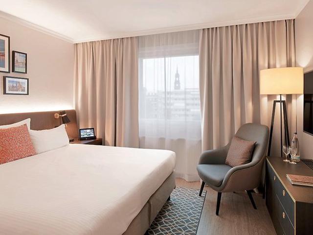Eingebettet in die malerischen Bellevue Gärten liegt das Bilderberg Bellevue Hotel Dresden. Die komfortablen Superior Zimmer sind zur Elbseite hin ausgerichtet. Stilvolle Möbel, Textilien in gedeckten Farbtönen und gepolsterte Sitzbänke machen den Raum zu einem Rückzugsort mit einem modernen, gemütlichen und wohnlichen Komfort. Nur einen Spaziergang über die Augustusbrücke entfernt befinden sich die Katholische Hofkirche, die Semperoper, der Zwinger und die Frauenkirche.