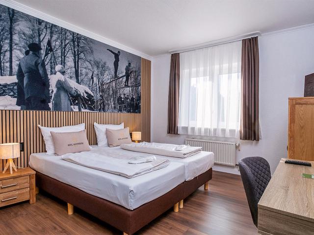 Dreibett-Zimmer (DZ3, ca. 20 qm), TV, WLAN (inklusive), Sitzgelegenheit. Bad/Dusche, WC, Föhn. Max. 3E