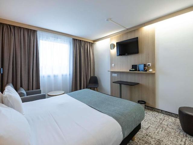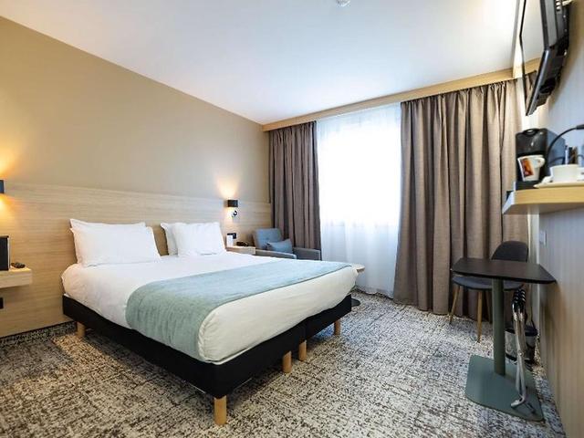 Das Hotel liegt ca. 15 min vom Stadtzentrum Bordeaux entfernt. In unmittelbarer Nähe befinden sich die Autobahnen A10 in Richtung Paris und A63 in Richtung Biarritz und Spanien. Von hier aus können Sie die Sehenswürdigkeiten der Gegend, wie Schlösser und Strände erkunden. Das Stadthotel bietet Ihnen eine modere Einrichtung in herzlicher Gastfreundlichkeit. Es verfügt auf 4 Etagen über insgesamt 69 Zimmer, Empfangshalle, 24 h Rezeption, Hotelsafe, Aufzug, Klimaanlage und Internetzugang. Des Weiteren besitzt es eine Bar und Parkplatz (Gebühr). Die Zimmer sind für bis zu 4 Personen geeignet und beinhalten Badezimmer, Haartrockner, Klimaanlage und Terrasse. Darüber hinaus sind sie mit Direktwahltelefon, Sat.-TV, Internetzugang und Teezubereiter ausgestattet. In der Nähe des Hotels finden Sie einen ruhigen 160 ha großen See mit Wassersportmöglichkeiten und einem Casino. Es ist Bed & Breakfast buchbar. Die Gäste können sich sowohl ihr Frühstück als auch das Mittagessen an einem Buffet zusammenstellen. Außerdem kann das Mittagessen à la carte gewählt werden.