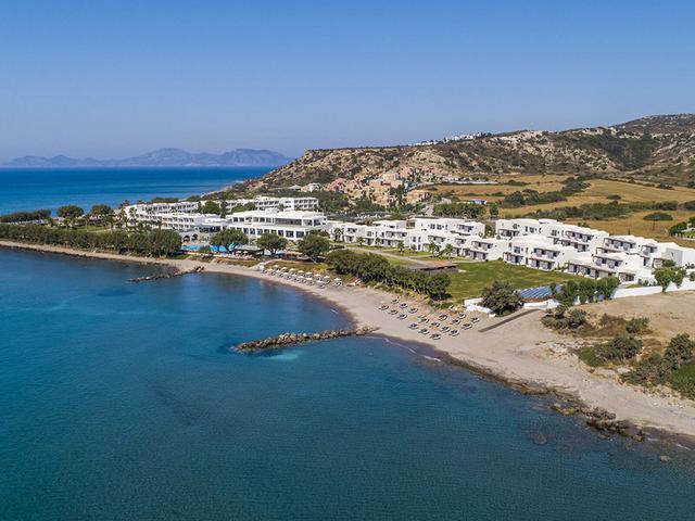 landestypischen Stil erbaute Anlage liegt an der Südküste der Insel Kos, direkt am Strand. In ca. 4 km Entfernung befindet sich das Dorf Kardamena. Kos-Stadt erreicht man nach ca. 31 km. Durch die Nähe zum Flughafen kann es zeitweise zu Fluglärm kommen.