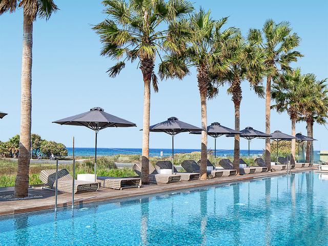 Ausstattung: Modernes Tophotel der Luxusklasse 'Small Luxury Hotels of the World'. Schön angelegter Swimmingpool, Liegen, Schirme, Badetücher am Pool und Strand, Sips-and-Bites-Snackbar (à la carte, gegen Gebühr). Strandservice (gegen Gebühr). Empfangsbereich, Rezeption, WLAN, geschmackvoll dekoriertes À-la-carte-Restaurant Cuvée (kreative griechische Gourmetküche), moderne Bar, Boutique. Landeskategorie: 5 Sterne, 53 Einheiten.