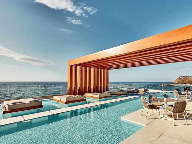 Das erwartet Sie: Naturinspiriertes Design trifft auf entspannte Luxusatmosphäre. Das Hotel bietet weite Ausblicke aufs Kretische Meer, Doppelzimmer und Swim-up-Zimmer. Yoga, Fitness und eine geschmackvolle Fusionsküche runden den Aufenthalt ab.
