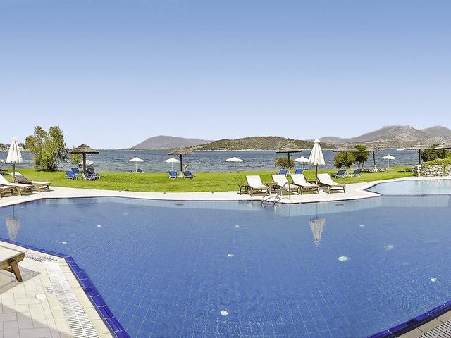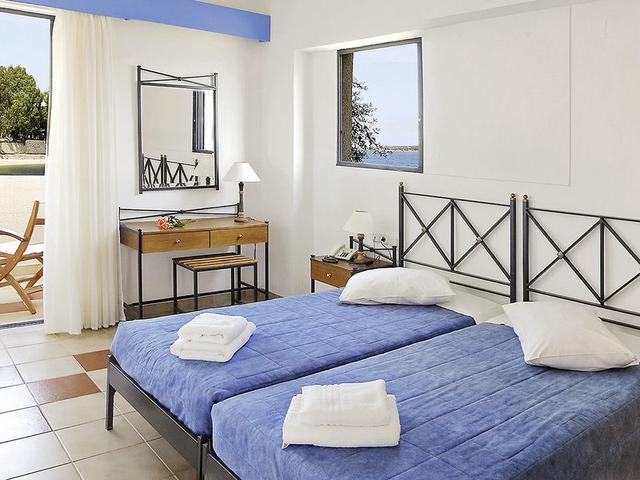 Ausstattung: Gepflegte Hotelanlage, bestehend aus 3 Gebäuden. Swimmingpool, bis an den Strand reichende Liegewiese und teilweise überdachte Sonnenterrasse. Liegen und Schirme, Pool- und Snackbar. Empfangsbereich mit Rezeption, WLAN, Frühstückraum, Bar mit Außenterrasse und Café. Parkplätze. Landeskategorie: 3 Sterne, 52 Zimmer.