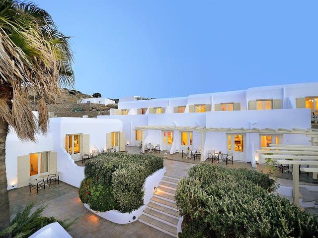 Lage & Umgebung Das Hotel liegt verkehrsgünstig an der Kunstschule Lakon Technon Skoli in der Nähe der Stadt Mykonos. Die schönen Strände der Insel sind bequem mit dem Bus und die Innenstadt nach einem kurzen Spaziergang zu erreichen.