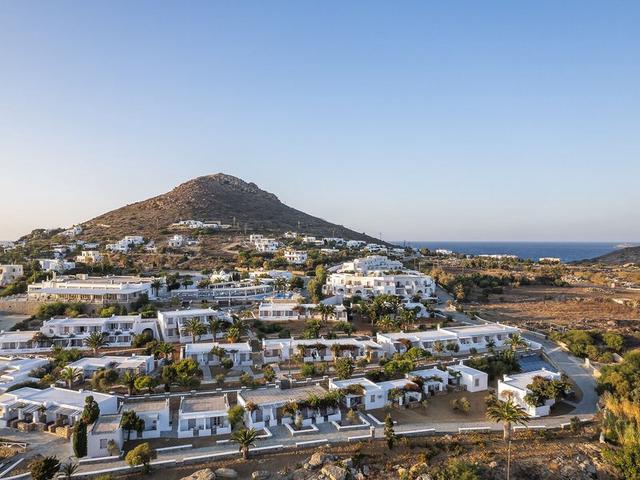 Lage & Umgebung Das Hoteldorf befindet sich an der Westküste der Insel Naxos und liegt perfekt in der ruhigen Umgebung von Stelida, ca. 250 m über dem Meeresspiegel, direkt über dem berühmten 1 km langen Strand von Aghios Prokopios, zu dem man bequem in ca. 8 min zu Fuß gehen kann. Restaurants lassen sich in einem Umkreis von etwa 300 m finden, Bars und Diskos sind ca. 2 km entfernt. Bis zur nächsten Bushaltestelle sind es etwa 700 m. Das Hotel liegt nur etwa 4 km südlich von der Hafenstadt Naxos und nur ca. 2 km vom Flughafen Naxos entfernt.