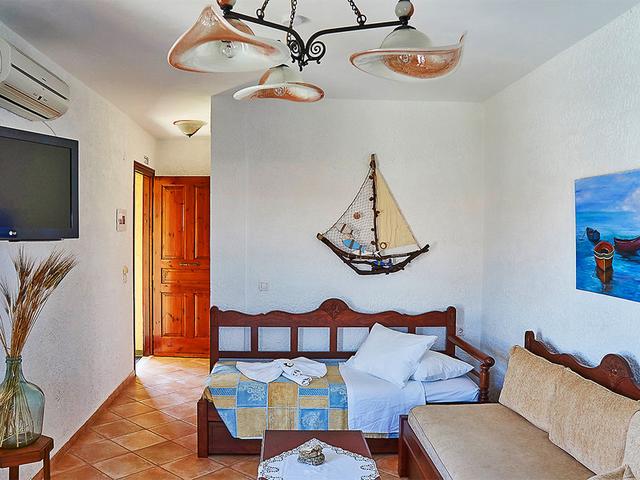 Wohnen: Studios (ST, ca. 25 qm), liebevoll ausgestattet, Klimaanlage, Kitchenette mit Kühlschrank, Wasserkocher, Kaffeemaschine, TV, Telefon, WLAN, Safe. Bad oder Dusche, WC, Föhn, Bademäntel, Slipper. Terrasse. Max. 2E