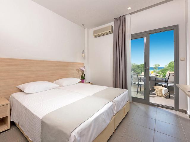 Ausstattung: Komforthotel mit großer Gartenanlage, Swimmingpool, Sonnenterrasse, Liegen und Schirmen am Pool (am Strand gegen Gebühr), Poolbar. Kostenloser Parkplatz. Empfangsbereich mit Rezeption, WLAN, Restaurant, Bar. Landeskat.: 4 St., 69 Zi.
