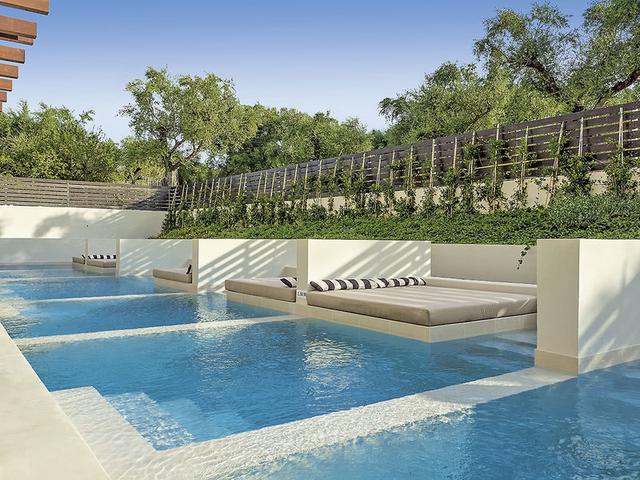 Ausstattung: Hotel mit Swimmingpool, Sonnenterrasse, Liegen und Schirme (Badetücher geg. Geb.) und Poolbar. Empfangsbereich mit Rezeption, WLAN im gesamten Hotel (inkl.), Restaurant (mediterrane und griechische Küche) und ein À-la-carte-Restaurant "Eucalyptos" (geg. Geb.). Landeskat.: 4 Sterne, 54 Zimmer.