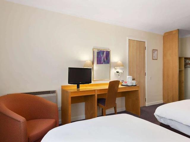 Genieße den Blick auf den Garten und Annehmlichkeiten wie kostenfreies WLAN und Geschäfte im Days Inn by Wyndham Hamilton. Speisen Sie im hoteleigenen Restaurant und nutzen Sie Annehmlichkeiten wie eine 24-Stunden-Rezeption und Geldautomaten/Bankdienstleistungen. Die 38 Gästezimmer bieten digitales Programm und Kaffee-/Teekocher. Die Badezimmer verfügen über Dusch-/Badewannen-Kombinationen und Haartrockner. Kostenlose Parkplätze stehen zur Verfügung. Das Hotel liegt 2 Autominuten vom Strathclyde Country Park in Hamilton entfernt und ist auch 10 Minuten vom Hollywood Bowl entfernt. Der Glasgow International Airport ist ebenfalls bequem zu erreichen.