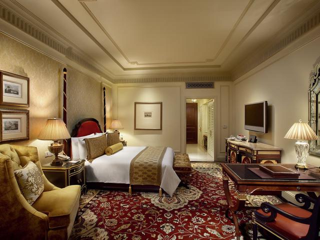 Zimmerbeschreibung: 254 luxuriöse Zimmer und Suiten im klassischen Stil. Bereits die Einstiegskategorie Grand Deluxe bietet mit 51 m² viel Platz und alle Annehmlichkeiten eines Luxushotels inkl. Bad mit Badewanne und separater Duschkabine. Die Premiere Zimmer sind mit 55 m² noch geräumiger. Gäste der gleich grossen Royal Club Zimmer geniessen zusätzliche Aufmerksamkeiten in der exklusiven Royal Club Lounge und kostenlose Flughafentransfers.