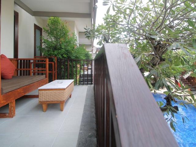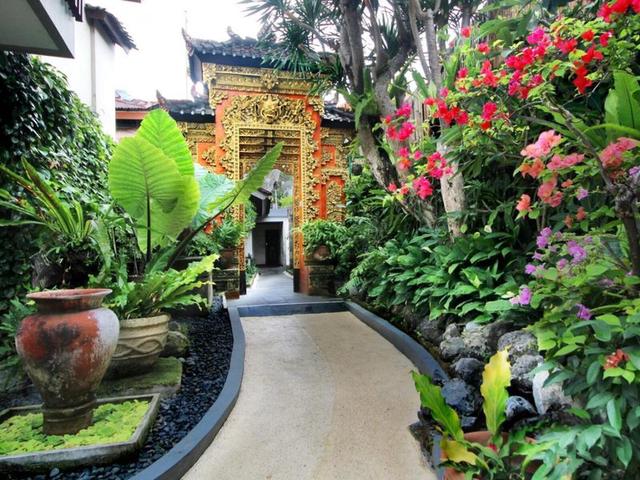 Lage & Umgebung Das Hotel liegt im Herzen von Legian, etwa 10 min vom Strand entfernt. Bis zur Hauptstadt Denpasar sind es ca. 30 min und die Fahrt zum internationalen Flughafen Bali dauert etwa 15 min. Einkaufsmöglichkeiten, Unterhaltungsangebote und eine Vielzahl an Restaurants befinden sich in der unmittelbaren Nachbarschaft.