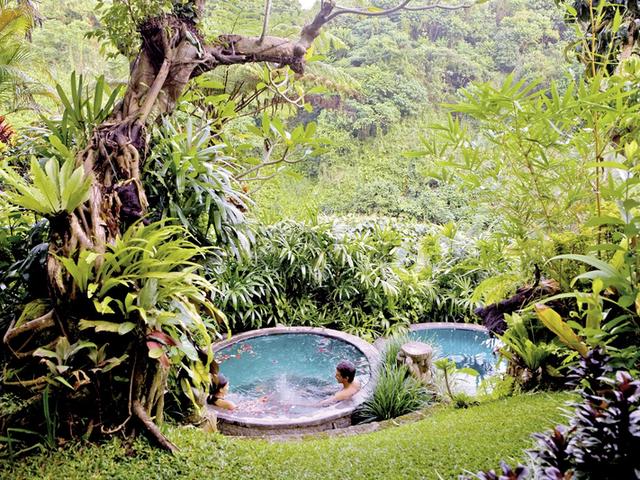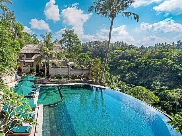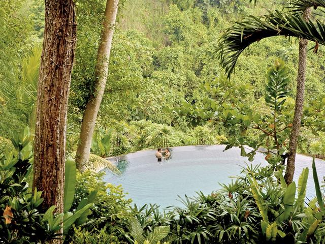 Eines der Highlights dieses Resorts ist der zauberhafte Pool, der in den Urwald überzugehen scheint. Der Ausblick auf die umliegende Landschaft mit dem Tjampuhan-Tal und dem Flüsschen Oos ist einmalig! Die Villen bieten Ihnen viel Luxus in traditioneller Bauweise.