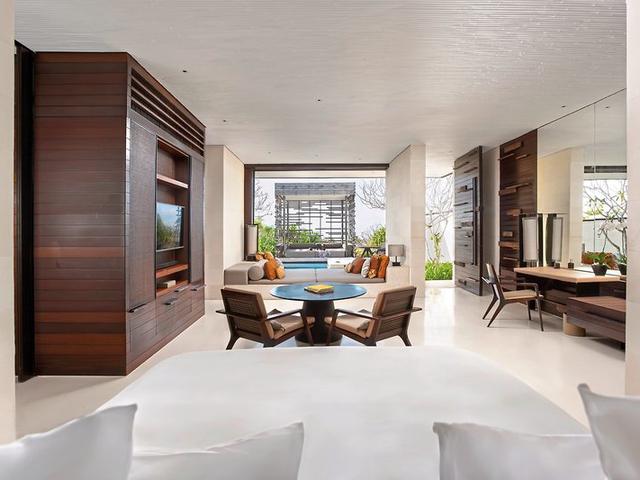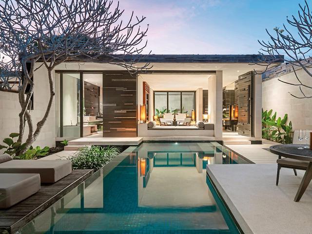 Die Zimmer: Klare Formen und natürliche Materialien wie Rattan, Stein und Holz bestimmen das Erscheinungsbild der 65 alleinstehenden Villen. Zeitgenössisches Design kombiniert mit traditionellen balinesischen Elementen erschaffen ein einzigartiges Gesamtbild, das der Gast am besten von seinem Privatpool aus genießen kann. Alle Villen verfügen über Bad, separate Dusche, Außendusche, Badewanne, Föhn, Satelliten-TV (Flachbildschirm), Telefon, WLAN (ohne Gebühr), Tee- und Kaffeezubereiter, Minibar, Safe und Klimaanlage. Außenbereich mit kleinem Garten, Terrasse, Cabana mit Tagesbetten und privatem Pool. Butler-Service.