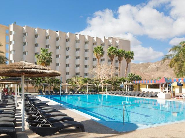 Lage & Umgebung Direkt an der Südspitze von Eilat gelegen, umrahmt von Wüstenhügeln und dem tiefblauen Roten Meer, bietet das Hotel einen idealen Ausgangspunkt. Der Sandstrand liegt ca. 300 m entfernt, das lebendige Stadtzentrum in etwa 5 km Entfernung.