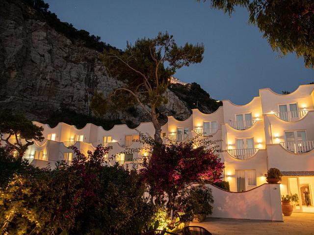 Lage & Umgebung Das Hotel befindet sich am Strand von Conca Azzurra, es ist von Olivenhainen umgeben und bietet einen schönen Blick auf Capri. Es liegt nur etwa 1 km vom Zentrum von Massa Lubrense und etwa 4 km von Sorrent entfernt. Das Hotel liegt dank der bequemen Anschlüsse an die häufig verkehrenden öffentlichen Verkehrsmittel, wie Busse, Züge und Fähren, strategisch günstig für diejenigen, die diese bezaubernde Gegend gerne genauer erkunden möchten. In etwa 30 bis 60 min können die Gäste berühmte Attraktionen, wie die Küste von Amalfi, die Ruinen von Pompeii, die Inseln Ischia und Capri und die Stadt Neapel besuchen. Der Flughafen Capodichino befindet sich etwa 65 km vom Hotel entfernt.