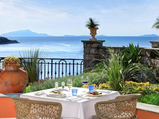 Dieses elegante und raffinierte Hotel der gehobenen Kategorie liegt im Herzen von Sorrent. Es thront über dem Meer auf einer Klippe und überblickt den Golf von Neapel und den Vesuv. Es liegt innerhalb eines großen, alten Parks mit einer Mischung aus exotischen Pflanzen, großartigen Kamelien und Orangen- und Zitronenbäumen. Die Gäste finden Restaurants, Bars, Nachtclub sowie Anschlüsse ans öffentliche Verkehrsnetz in ca. 50 m Entfernung vom Hotel. Das touristische Zentrum von Sorrent ist rund 100 m entfernt. Bis nach Capri sind es ca. 25 min, nach Pompeii rund 35 min, nach Herculaneum etwa 45 min und nach Neapel ca. 1 h. Den Flughafen Neapel erreicht man nach rund 44 km.