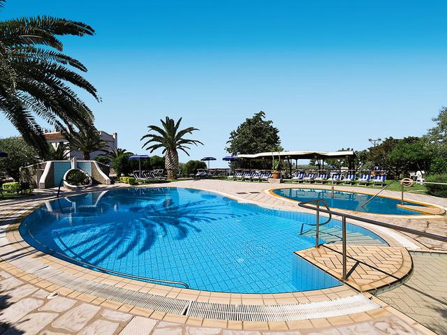 Ausstattung: Typisches Urlaubshotel mit Lobby, Rezeption, WLAN (in den öffentlichen Bereichen inklusive), Restaurant, Snackbar mit Gartenterrasse. Im der gepflegten Gartenanlage finden Sie 2 Swimmingpools (1x Thermalpool, 1x Süßwasserpool) mit Hydromassage und Sonnenterrassen (Liegen, Sonnenschirme nach Verfügbarkeit inkl.). Privatparkplatz vorhanden. Landeskategorie: 3 Sterne, 45 Zimmer.