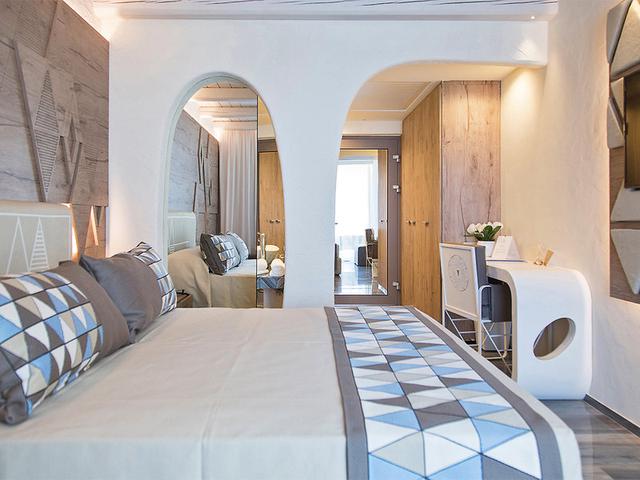 Wohnen: Deluxe-Zimmer (DDM, ca. 22 qm), im modern-sardischen Stil und warmen Farben, Klimaanlage, LCD-TV, Safe. WLAN (inklusive), Minibar (auf Anfrage, gegen Gebühr). Dusche, WC, Föhn. Balkon/Terrasse, Meerblick. Max. 2E