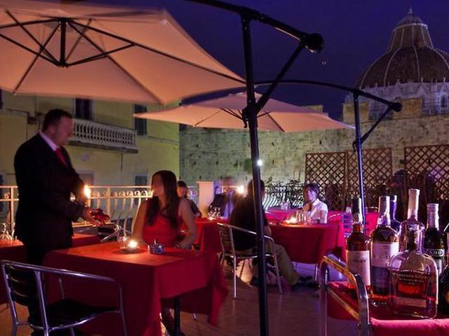 Dieses Hotel liegt im Zentrum der Stadt, direkt vor der beeindruckenden Piazza dei Miracoli und in der Nähe vieler Einkaufsmöglichkeiten. Diese Anlage kann leicht mit dem Auto oder mit den öffentlichen Verkehrsmitteln vom Hauptbahnhof aus erreicht werden. Der nächstgelegene Flughafen, Galileo Galilei in Pisa, ist ca. 3 km weit entfernt. Dieses familienfreundliche Stadthotel wurde erst kürzlich renoviert. Es bietet seinen Gästen von der Innenterrasse und auch von einigen Zimmern aus einen atemberaubenden Blick auf das Baptisterium. Das Hotel ist nur einen Steinwurf vom größten Krankenhaus und von der Piazza dei Cavalieri entfernt und verfügt über 16 komfortable Zimmer und eine überwältigende Sammlung zeitgenössischer Kunstwerke in seinem öffentlichen Bereich. In allen öffentlichen Bereichen des Hotels steht auch ein WLAN-Internetzugang zur Verfügung. Zusätzlich zu einem Empfangsbereich mit 24h-Rezeption/Check-out Service, bietet dieses klimatisierte Hotel eine TV-Lounge, ein Restaurant und einen Parkplatz, auf dem die Gäste ihr Fahrzeug abstellen können. In allen Zimmern finden sich schöne zeitgenössische Kunstwerke. Die Räume sind modern eingerichtet und bieten eine Minibar, Sat.-TV, Direktwahltelefon und WLAN-Internetzugang zusätzlich zu einem eigenen Badezimmer mit Dusche und Haartrockner. Des Weiteren sind Radio und individuell regulierbare Klimaanlage und Heizung vorhanden. Die Gäste können sich auf einer Sonnenterrasse mit einem außergewöhnlichen Blick auf das Baptisterium entspannen oder dort an ihrer Bräune arbeiten. Es können Übernachtungen mit Frühstück gebucht werden. Das Hotel bietet jeden Morgen ein kontinentales Frühstück an.