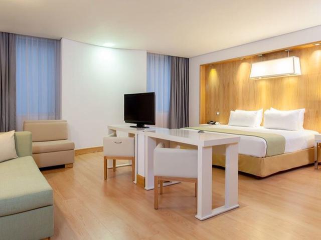 Allgemeine Beschreibung:Das Stadthotel NH Collection Mexico City Airport T2 liegt ca. 25 km vom Flughafen (MEX) entfernt. Zum touristischen Zentrum sind es ca. 9 km. Einkaufsmöglichkeiten liegen ca. 6 km vom Hotel, und auch ein Supermarkt befindet sich in der Umgebung des Hotels. Zur nächsten Diskothek gelangt man nach rund 12 km. Eine U-Bahnstation ist ca. 1 km entfernt. Weiter entfernt gelegene Orte lassen sich über den Bahnhof in rund 1 km Entfernung erreichen. Ausstattung:Das Stadthotel verfügt über insgesamt 287 Zimmer. Es ist ausgestattet mit einer Rezeption (Check In ab 15:00 Uhr, Check out bis 13:00 Uhr), einer Lobby mit Bar, insgesamt 4 Liften, einer Klimaanlage, einem Safe (kostenlos), einem Kiosk, diversen weiteren Shops sowie einem Parkplatz (gegen Gebühr). Für das leibliche Wohl sorgt ein Restaurant (klimatisiert). Erfrischende Getränke in geselliger Runde gibt es an der Hotelbar. WLAN steht den Hotelgästen kostenlos zur Verfügung. Weiterhin bietet das Hotel einen Konferenzbereich mit insgesamt 400 Sitzplätzen und Internetzugang. Die Zimmerreinigung und der Concierge-Service sind kostenlos. Zimmer-Service, Wäsche-/Bügel-Service und medizinischer Service sind gegen Gebühr. Verpflegung:Frühstück vom Buffet. Sport/Freizeit:Sport- und Unterhaltungsangebote: Fitness. Wellnessangebote: Sonnenterasse ggfls. gegen Gebühr. Zusätzliche Informationen:Für bestimmte Einrichtungen oder Aktivitäten können zusätzliche Gebühren anfallen. Einige Dienstleistungen hängen von der Jahreszeit und den lokalen klimatischen Bedingungen ab. Servicesprachen: englisch und spanisch. Kreditkarten: American Express, Euro/MasterCard und Visa. Doppel Superior Zimmer:Mit King-Size-Bett oder Doppelbett, Extrabett (Schlafsofa), Babybett (kostenlos), Teppichboden, Heizung (zentral gesteuert), Wasserkocher (ggf. geg. Gebühr), Minibar (ggf. geg. Gebühr), Internet (kostenlos) und Safe (kostenlos) sowie zentral gesteuerter Klimaanlage. Badezimmer mit Badewanne und Dusche (Größe: 31 m²). Einzelbelegung Superior Zimmer:Mit King-Size-Bett oder Doppelbett, Extrabett (Schlafsofa), Babybett (kostenlos), Teppichboden, Heizung (zentral gesteuert), Wasserkocher (ggf. geg. Gebühr), Minibar (ggf. geg. Gebühr), Internet (kostenlos) und Safe (kostenlos) sowie zentral gesteuerter Klimaanlage. Badezimmer mit Badewanne und Dusche (Größe: 31 m²).