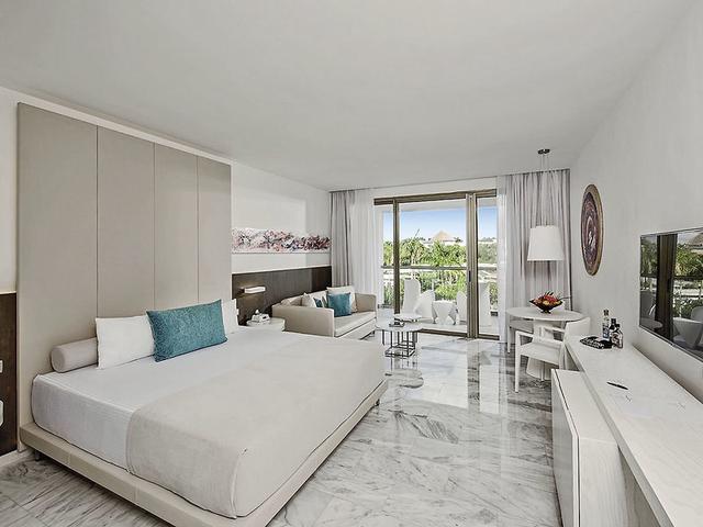 Juniorsuiten swim-up (JSS, ca. 46 qm), Sofa, Klimaanlage, Minibar (tägliche Auffüllung mit Wasser, Softdrinks und Bier), TV, Telefon, WLAN, Safe, 24-Std.-Zimmerservice. Badewanne und Dusche, WC, Föhn, Bademantel, Slipper. Terrasse mit Poolzugang. Max. 3E