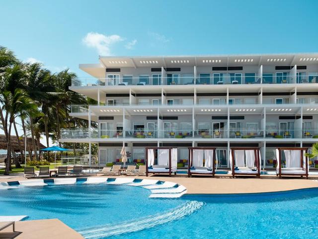 Allgemeine Beschreibung:Das Hotel Azul Beach Resort Riviera Cancun by Karisma liegt in der Umgebung eines Sandstrandes. Am Strand sind Sonnenliegen und Sonnenschirme kostenlos verfügbar. Die nächstgelegene Stadt ist Airport Cancun. Ein Supermarkt ist nach ca. 15 km zu erreichen. Für Mobilität im Urlaub sorgen neben einem Mietwagen-Verleih auch eine Bushaltestelle (ca. 5 km entfernt). Der Flughafen (CUN) ist ca. 27 km entfernt. Zwischen Hotel und Flughafen verkehrt ein Shuttle (gegen Gebühr). Ausstattung:Das 2-geschossige Strandhotel verfügt über 148 Zimmer, die sich auf ein Hauptgebäude und insgesamt 12 Nebengebäude verteilen. Es bietet seinen Gästen eine 24h geöffnete Rezeption (Check In ab 15:00 Uhr, Check out bis 12:00 Uhr), eine Lobby mit Bar, 3 Lifte, eine Klimaanlage, einen Safe (kostenlos), einen Shop, ein Theater, einen Parkplatz (kostenlos) sowie eine Geldwechsel-Möglichkeit. Für das leibliche Wohl sorgen 6 Restaurants (klimatisiert). In den insgesamt 4 Bars des Hotels freut man sich über Ihren Besuch. WLAN steht den Hotelgästen kostenlos zur Verfügung. Weiterhin bietet das Hotel einen Konferenzbereich mit Internetzugang. Zimmer-Service ist kostenlos. Wäsche-/Bügel-Service und medizinischer Service sind gegen Gebühr. Für die Zimmerreinigung und Concierge-Service fallen ggfls. Gebühren an. Schwimmbad:Zum Außenbereich des Hotels gehören 6 Frischwasser-Pools mit einem Kinderbecken. Hier stehen Sonnenschirme und Sonnenliegen kostenlos zur Verfügung. Erfrischende Getränke können direkt an der Poolbar eingenommen werden. Verpflegung:Frühstück vom Buffet. All Inclusive: Frühstück, Mittag- und Abendessen. Sport/Freizeit:Sport- und Unterhaltungsangebote: Aerobic, Fitness und Billard (ggf. geg. Gebühr). Wellnessangebote: Spa-Bereich mit Sauna und Massagen gegen Gebühr. Dampfbad ggfls. gegen Gebühr. Kinder finden im Außenbereich des Hotels einen Spielplatz. Kinderbetreuung: Mini-Club für Kinder (von 4 - 12 Jahren) und Babysitting (gegen Gebühr). Zusätzliche Informationen:Für bestimmte Einrichtungen oder Aktivitäten können zusätzliche Gebühren anfallen. Einige Dienstleistungen hängen von der Jahreszeit und den lokalen klimatischen Bedingungen ab. Servicesprachen: englisch, französisch, italienisch und spanisch. Kreditkarten: Visa, Euro/MasterCard und American Express. Familien Suite:Mit Babybett (kostenlos), gefliestem Boden, Wasserkocher (ggf. geg. Gebühr), Minibar (ggf. geg. Gebühr) und Internet (kostenlos) sowie zentral gesteuerter Klimaanlage. Badezimmer mit Dusche. JuniorSuite:Mit Babybett (kostenlos), gefliestem Boden, Wasserkocher (ggf. geg. Gebühr), Minibar (ggf. geg. Gebühr) und Internet (kostenlos) sowie zentral gesteuerter Klimaanlage. Badezimmer mit Dusche. JuniorSuite (SwimUp-Pool Terrasse):Mit Babybett (kostenlos), gefliestem Boden, Wasserkocher (ggf. geg. Gebühr), Minibar (ggf. geg. Gebühr) und Internet (kostenlos) sowie zentral gesteuerter Klimaanlage. Badezimmer mit Dusche. Luxury Suite:Mit Babybett (kostenlos), gefliestem Boden, Wasserkocher (ggf. geg. Gebühr), Minibar (ggf. geg. Gebühr) und Internet (kostenlos) sowie zentral gesteuerter Klimaanlage. Badezimmer mit Dusche. Luxury Suite (Pool Access):Mit Babybett (kostenlos), gefliestem Boden, Wasserkocher (ggf. geg. Gebühr), Minibar (ggf. geg. Gebühr) und Internet (kostenlos) sowie zentral gesteuerter Klimaanlage. Badezimmer mit Dusche. Luxury Suite (Ozeanblick):Mit Babybett (kostenlos), gefliestem Boden, Wasserkocher (ggf. geg. Gebühr), Minibar (ggf. geg. Gebühr) und Internet (kostenlos) sowie zentral gesteuerter Klimaanlage. Badezimmer mit Dusche.