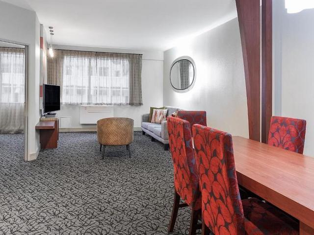 Das Hotel liegt genau im Zentrum von Wellingtons Golden Mile, so dass die Parlamentsgebäude einfach zu Fuß erreicht werden können. Es ist für Geschäftsreisende wie Urlauber ideal und liegt im zentralen Businessdistrikt, ganz in der Nähe von Geschäften, der Küste, Unterhaltungsmöglichkeiten, Cafés und Restaurants. Dieses moderne Hotel im Suiten-Stil liegt im Herzen von Wellingtons Boutiquenviertel Lambton Quay. Die kürzlich renovierten, modernen, geräumigen und vollständig ausgestatteten Suiten bieten in Sachen Stil das Beste, was man von einer Unterkunft erwarten kann. Dieses Hotel verfügt über eine Empfangshalle mit 24 h Rezeption, Hotelsafe, Wechselstube, Café, Restaurant und Speisesaal. Außerdem können die Gäste die Konferenzeinrichtungen, den Zimmer- und den Wäscheservice in Anspruch nehmen. Das lebhafte Viertel Lambton Quay ist die perfekte Kulisse für unsere große Auswahl an 65 geräumigen Wellington-Apartments/Suiten mit 1 oder 2 Schlafzimmern. Die Gäste können in ihrem Luxusapartment wahrhaft entspannen. Hier finden sie den Komfort vor, den sie von zu Hause gewöhnt sind: Die Zimmer verfügen über ein eigenes Bad mit Dusche und Haartrockner, ein Direktwahltelefon, ein TV, ein Radio und Internetzugang. Auch eine Küche, eine Minibar, ein Kühlschrank und ein Bügelset gehören zur Ausstattung. Zum Hotel gehört ein eigener Fitnessbereich. Im herrlichen, hoteleigenen Breakfast Café beginnen die Gäste den Tag mit einem sensationellen kontinentalen Frühstück.