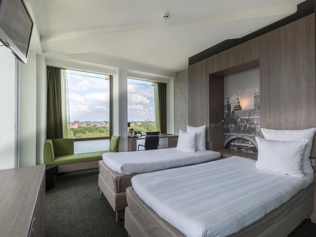 Das Leonardo Hotel Amsterdam Rembrandtpark befindet sich am Amsterdamer Ring A10, unmittelbar am Rembrandt-Park. Die Straßenbahnhaltestelle Admiraal Helferichstraat ist nur 350 Meter entfernt - von hier aus ist die Innenstadt in 20 Fahrminuten erreichbar. vtours-Urlauber dürfen sich auf moderne und stilvoll eingerichtete Zimmer mit Klimaanlage, Flachbild-Fernseher und WLAN freuen. In der 17. Etage befinden sich die Skybar und das Restaurant Floor17 mit atemberaubendem Panoramablick auf Amsterdam. Im Sommer genießen Urlauber auf der Dachterrasse einen Cocktail, im Winter verwandelt sich diese in eine Eislaufbahn. Im Fitnessraum können aktive Urlauber Trainingsstunden absolvieren, und die Sauna lädt zum Entspannen ein. Für Geschäftsreisende stehen Tagungsräume zur Verfügung.