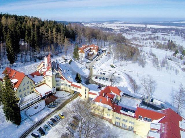 Lage: Die barrierefreie Klinika Mlodosci Medical SPA besteht aus einem Alt- und einem Neubau, die durch einen Bademantelgang verbunden sind. Das waldreiche Bad Schwarzbach ist ca. 4 km vom Ortskern Bad Flinsbergs entfernt. Bad Flinsberg und die Umgebung zeichnen sich durch ein spezifisches Mikroklima, das Vorkommen natürlicher Heilmittel, wie Heilwasser, Radonwasser und Moor aus. Eingebettet in eine herrliche Naturlandschaft genießen Gäste hier eine ruhige Umgebung mit weiten Ausblicken auf die umliegenden Wälder und Berge. Direkt am Haus beginnen zahlreiche Wander- und Radwege, die zu Erkundungstouren in die reizvolle Umgebung einladen.