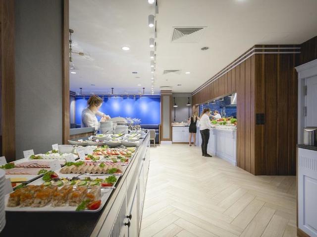 Essen & Trinken: Es stehen verschiedene gastronomische Einrichtungen zur Auswahl, wie ein Restaurant, ein Café und eine Bar. Die Unterkunft bietet als buchbare Verpflegungsleistung Halbpension. Angeboten werden Frühstück, Mittagessen und Abendessen. Diätgerichte und Kindermenüs werden auf Wunsch zubereitet. Darüber hinaus stellt die Unterbringung spezielle Verpflegungsangebote bereit. Eine besondere Attraktion ist das Showcooking.