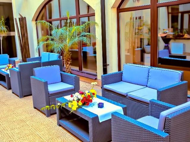 Das bietet Ihre Unterkunft: Für die Gäste stehen in einem 2-stöckigen Haupthaus und in einem 2-stöckigen Nebengebäude 26 Zimmer, 2 Junior-Suiten, 2 Suiten, 4 Einzel- und 17 Doppelzimmer zur Auswahl. An der 24-Stunden-Rezeption im Empfangsbereich werden die Gäste vom englischsprachigen Personal herzlich begrüßt. Das Ein- und Auschecken ist rund um die Uhr möglich. Die Einrichtung des Hotels umfasst eine Gepäckaufbewahrung, einen Safe, einen Geldautomaten und einen Getränkeautomaten. Per WLAN erhalten die Gäste Zugang zum Internet. Hilfestellung bei der Buchung von Ausflügen wird am Tourdesk geboten. Das Haus verfügt über eine Reihe von behindertengerechten Annehmlichkeiten. Ein Aufzug und rollstuhlgerechte Einrichtungen sind vorhanden. Neben einem Souvenirshop sind weitere Geschäfte zu finden. Ein Garten bietet zusätzlichen Raum für Entspannung und Erholung im Freien. Zu den weiteren Einrichtungen der Unterbringung zählen ein Zeitungskiosk und ein TV-Raum. Bei einer Anreise mit dem Auto können die Gäste dieses in einer Garage oder auf dem Parkplatz parken. Zu den gebotenen Leistungen gehören ein 24h-Sicherheitsdienst, eine Autovermietung, ein Transferservice, ein Zimmerservice, ein Wäscheservice, eine Münzwäscherei, ein Hotelarzt und ein eigener Shuttlebus. Bei Geschäftlichem hilft das Business-Center gerne weiter und bietet ein Faxgerät an.