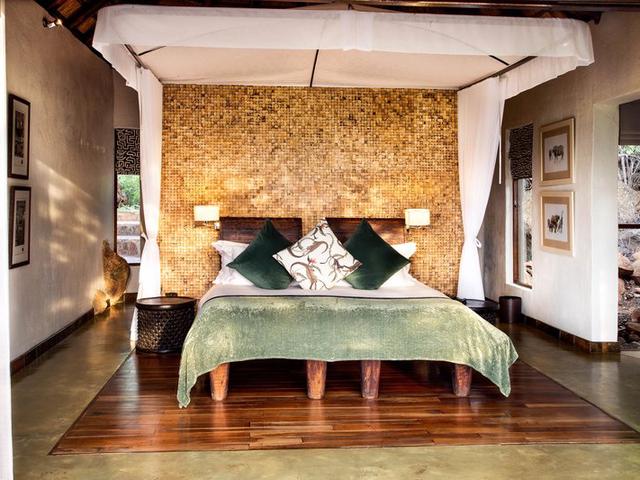 Zimmerbeschreibung: Die grosszügigen Suiten wurden rund um Kopjen gebaut. Ausgestattet mit Dusche/Bad und Aussendusche, Klimaanlage, Fön, Safe, Ventilator, Minibar, Cheminée. Von der grosszügigen Terrasse mit Planschpool und einladenden Sonnenliegen, haben die Gäste einen märchenhaften Ausblick auf die Weiten des Madikwe Game Reserve. Kinder ab 10 Jahren.