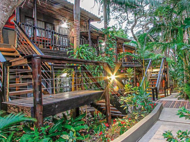 Die Lodge im tropischen Baumhausstil ist der ideale Ausgangspunkt, um den iSimangaliso Park zu erkunden. Oder sie entspannen auf der Holzterrasse am Pool unter dichter Vegetation.