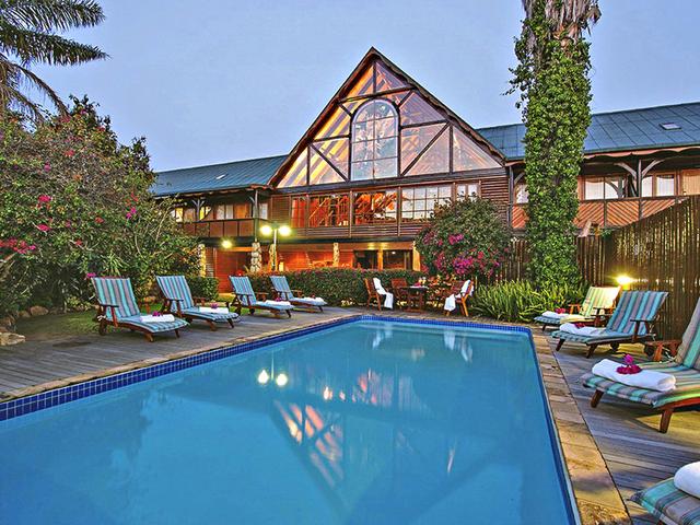 Lage & Umgebung Dieses 1998 erbaute Hotel ist eines der größten Blockhaus-Gebäude in der südlichen Hemisphäre. Eindrucksvoll ist die Eingangshalle mit kunstvoll geschnitzten Steineiben-Baumstämmen, spektakulären Buntglasfenster und der massiven Holztreppe. Es ist ca. 350 m von Knysna Quays mit dem Einkaufskomplex und ca. 200 m von der Lagune entfernt. Entfernung zum Flughafen George ca. 60 km, Port Elizabeth ca. 274 km.