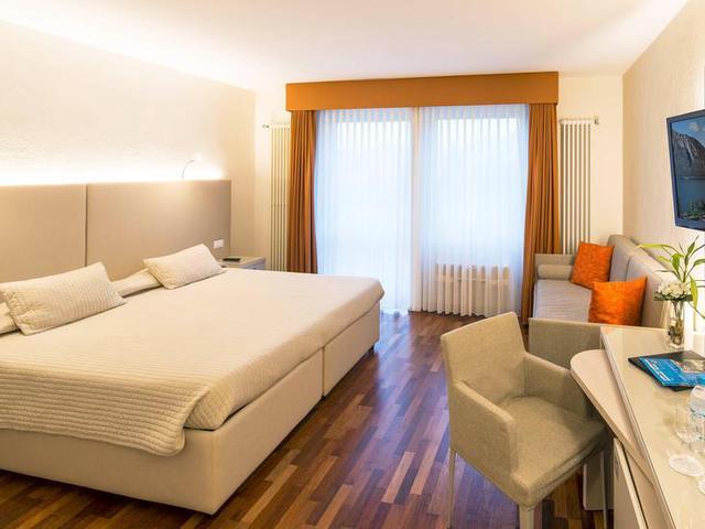 Einige Zimmer verfügen auch über Terrasse oder Balkon mit Sicht auf den See oder die Berge.