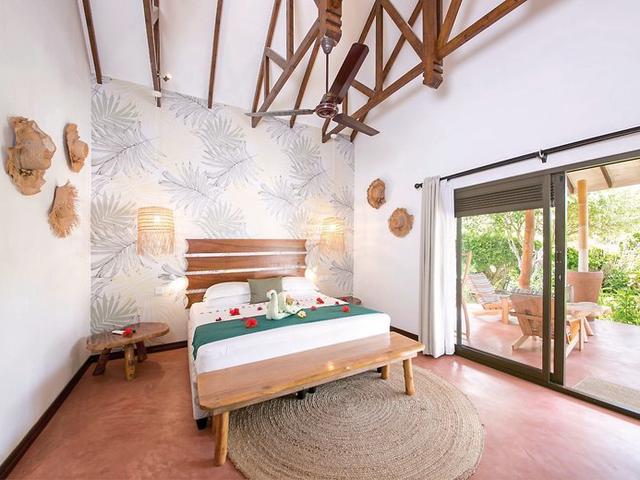 - 36-40 qm, Doppel, Gartenblick, Bettwäsche, Handtücher und Matratzen aus 100% Bio-Baumwolle, Dusche, Außendusche, Haartrockner, Klimaanlage, Ventilator, Safe, TV, Kaffee/Tee, Kühlschrank, Terrasse