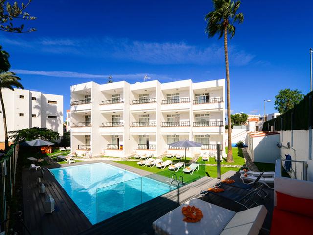 Allgemeine Beschreibung:Rund 800 m vom Sandstrand entfernt gelegenes Hotel (Adults- and Gay only), besonders bei FKK-Anhängern beliebt. Zum touristischen Zentrum sind es ca. 950 m. Die Stadt Maspalomas ist ca. 2 km entfernt (Mogan ca. 32 km, Vecindario ca. 25 km). Einkaufsmöglichkeiten liegen ca. 950 m vom Hotel, ein Supermarkt ist nach ca. 500 m zu erreichen. Zu den nächsten Bars und Restaurants gelangt man ebenfalls nach rund 950 m. Auch die nächste Diskothek liegt rund 950 m entfernt. Weitere Unterhaltungsangebote wie ein Kino und ein Theater sind in ca. 22 km bzw. in ca. 23 km Entfernung zu finden. Folgende Sehenswürdigkeiten sind vom Hotel aus erreichbar: Holiday World (ca. 4 km), Palmitos Park (ca. 13 km), Aqualand (ca. 6 km), Dunas de Maspalomas (ca. 1 km) und Meloneras (ca. 6 km). Für Mobilität im Urlaub sorgen neben einem Mietwagen-Verleih auch ein Motorrad-Verleih und ein Taxistand sowie eine Bushaltestelle in etwa 600 m Entfernung. Zur ärztlichen Versorgung im Notfall befindet sich ein Krankenhaus in etwa 6 km Entfernung. Der Flughafen (LPA) ist ca. 30 km entfernt. Zwischen Hotel und Flughafen verkehrt ein Shuttle (gegen Gebühr). Ausstattung:Das 3-geschossige Hotel verfügt über 15 Zimmer. Es bietet seinen Gästen eine Rezeption (Check In ab 14:00 Uhr, Check out bis 11:00 Uhr), einen Safe (gegen Gebühr) sowie einen Parkplatz (kostenlos). WLAN steht den Hotelgästen kostenlos zur Verfügung. Wäsche-Service und medizinischer Service sind gegen Gebühr. Schwimmbad:Zum Außenbereich des Hotels gehört ein Frischwasser-Pool. Verpflegung:Halbpension beinhaltet Frühstück und Abendessen. Sport/Freizeit:Ein Golfplatz liegt 3 km vom Hotel entfernt. Fahrradverleih. Wellnessangebote: Massagen gegen Gebühr. Zusätzliche Informationen:Für bestimmte Einrichtungen oder Aktivitäten können zusätzliche Gebühren anfallen. Einige Dienstleistungen hängen von der Jahreszeit und den lokalen klimatischen Bedingungen ab. Servicesprachen: englisch und spanisch. Kreditkarten: American Express, Visa und Euro/MasterCard. Deluxe Apartment:Mit Wasserkocher (kostenlos), Balkon, Internet (kostenlos), Safe (kostenlos) und Sat-TV mit lokalen Sendern sowie zentral gesteuerter Klimaanlage. Badezimmer mit Dusche. Deluxe Apartment (Nicht erstattbar):Mit Wasserkocher (kostenlos), Balkon, Safe (kostenlos) und Sat-TV mit lokalen Sendern. Badezimmer mit Dusche. Einzelbelegung Deluxe Apartment:Mit Wasserkocher (kostenlos), Balkon, Safe (kostenlos) und Sat-TV mit lokalen Sendern sowie zentral gesteuerter Klimaanlage. Badezimmer mit Dusche. Einzelbelegung Deluxe Apartment (Nicht erstattbar):Mit Wasserkocher (kostenlos), Balkon, Safe (kostenlos) und Sat-TV mit lokalen Sendern. Badezimmer mit Dusche. Standard Apartment:Mit Wasserkocher (kostenlos), Balkon, Internet (kostenlos), Safe (kostenlos) und Sat-TV mit lokalen Sendern sowie zentral gesteuerter Klimaanlage. Badezimmer mit Dusche. Standard Apartment (Nicht erstattbar):Mit Wasserkocher (kostenlos), Balkon, Safe (kostenlos) und Sat-TV mit lokalen Sendern. Badezimmer mit Dusche. Einzelbelegung Standard Apartment:Mit Wasserkocher (kostenlos), Balkon, Internet (kostenlos), Safe (kostenlos) und Sat-TV mit lokalen Sendern. Badezimmer mit Dusche. Einzelbelegung Standard Apartment (Nicht erstattbar):Mit Wasserkocher (kostenlos), Balkon, Internet (kostenlos), Safe (kostenlos) und Sat-TV mit lokalen Sendern. Badezimmer mit Dusche.
