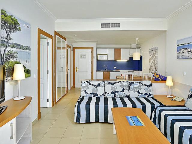 Ausstattung: Familienfreundliches, voll klimatisiertes Aparthotel, bestehend aus 2 Gebäuden, durch eine Straße getrennt, mit Garten, Poollandschaft, großer Sonnenterrasse, Liegen, Schirmen (Badetücher gegen Kaution), Snackbar (12:00-16:00 Uhr) mit teilweise überdachter Sitzterrasse. Empfangshalle, Rezeption, WLAN (inklusive), Aufenthaltsraum, TV-Ecke, Bar, Internetecke, Restaurant. Landeskategorie: 4 Sterne, 100 Einheiten, 3-4 Etagen, Lift.