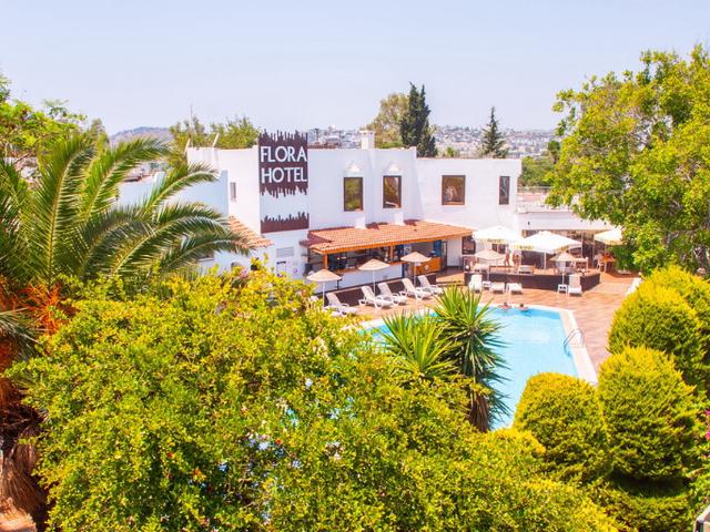 Das Hotel Flora Hotel (ex. Club Hotel Flora) liegt ca. 50 m vom Public Beach, einem Sandstrand entfernt. Am Strand sind Sonnenliegen und Sonnenschirme kostenlos verfügbar. Die nächstgelegene Stadt ist Bodrum (Mugla ca. 112 km). Ein Supermarkt befindet sich in der Umgebung des Hotels. Vom Hotel aus ist eine Diskothek zu erreichen. Folgende Sehenswürdigkeiten sind vom Hotel aus erreichbar: Bodrum Windmills (ca. 800 m), Holikornos Masoleum (ca. 2 km) und Myndos Doors. Für Mobilität im Urlaub sorgen ein Taxistand (ca. 100 m) und eine Bushaltestelle (ca. 90 m entfernt). Zur ärztlichen Versorgung im Notfall befindet sich ein Krankenhaus in etwa 500 m Entfernung. Der Flughafen (BJV) ist ca. 39 km entfernt. Ein weiterer Flughafen (DLM) liegt in etwa 205 km Entfernung.