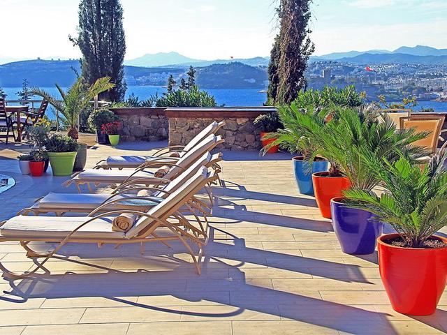 Das Hotel am Kloster Hill steht am südlichen Ende von Bodrum, von dort aus sind es weniger als 10 Minuten zu Fuß (ca. 500 m) bis zur Fußgängerzone in der Stadtmitte. Der nächste Strand ist etwa 300 m entfernt, und Bodrums schönes Schloss und sein Jachthafen liegen beide etwas mehr als 1 km entfernt. Die Gäste erreichen zahlreiche Bars, Clubs und Restaurants nach ungefähr 500 m. Das Mausoleum von Bodrum ist etwa 1,7 km vom Hotel entfernt. Bis zur Bushaltestelle sind es ca. 1500 m und bis zum Flughafen Milas-Bodrum etwa 32 km.