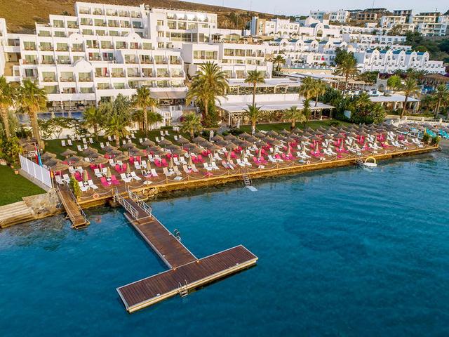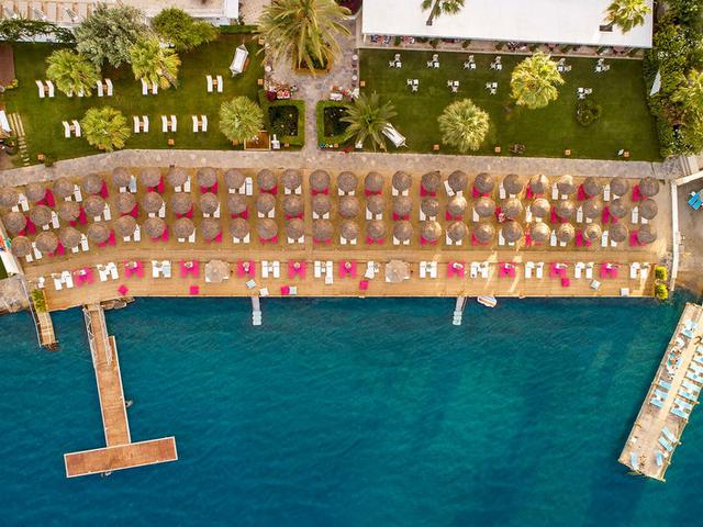 Das Strandhotel liegt direkt am privaten Sand-/Kiesstrand (Badeschuhe empfehlenswert) des Urlaubsortes Bardakci. In ca. 900 m Entfernung befinden sich Unterhaltungsmöglichkeiten. Die Innenstadt ist ca. 900 m entfernt. Die nächste Stadt Mugla liegt ca. 128 km entfernt. Flughäfen: DLM ca. 205 km, ADB ca. 226 km, BJV ca. 40 km.