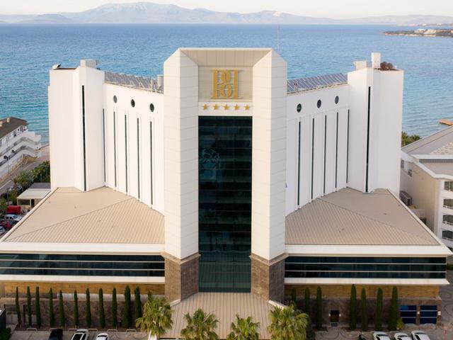 Allgemeine Beschreibung:Direkt am hoteleigenen Sandstrand gelegenes Hotel. Am Strand sind Sonnenschirme und Sonnenliegen kostenlos verfügbar. Die Stadt Cesme ist ca. 2 km entfernt (Alacati ca. 7 km, Izmir ca. 75 km). Folgende Sehenswürdigkeiten sind vom Hotel aus erreichbar: Dalyan (ca. 4 km), Alacati (ca. 7 km), Ildir (ca. 20 km), Ephesus (ca. 155 km) und Kusadasi (ca. 170 km). Für Mobilität sorgt ein Mietwagen-Verleih. Der Flughafen (ADB) ist ca. 85 km entfernt. Ein weiterer Flughafen (BJV) liegt in etwa 287 km Entfernung. Ausstattung:Das 8-geschossige Strandhotel verfügt über 253 Zimmer. Es bietet seinen Gästen eine 24h geöffnete Rezeption (Check In ab 14:00 Uhr, Check out bis 12:00 Uhr), eine Lobby mit Bar, 2 Lifte, eine Klimaanlage, einen Friseur, einen Minimarkt, weitere Shops, einen Parkplatz (kostenlos) sowie eine Geldwechsel-Möglichkeit. Für das leibliche Wohl sorgt eine Snackbar. WLAN steht den Hotelgästen kostenlos zur Verfügung. Weiterhin bietet das Hotel einen Konferenzbereich mit. Die Zimmerreinigung ist kostenlos. Zimmer-Service, Wäsche-/Bügel-Service und medizinischer Service sind gegen Gebühr. Schwimmbad:Zum Außenbereich des Hotels gehört ein Pool mit einem Kinderbecken. Hier stehen Sonnenschirme und Sonnenliegen kostenlos zur Verfügung. Eine Bar am Pool bietet den Gästen erfrischende Getränke. Verpflegung:Frühstück (von 07:00 - 10:00 Uhr) vom Buffet. Sport/Freizeit:Sport- und Unterhaltungsangebote: Beachvolleyball, Billard (geg. Gebühr), Aerobic, Tischtennis (kostenlos), Fitness und Dart (kostenlos). Fahrradverleih. Wellnessangebote: Spa-Bereich mit Sauna, Dampfbad, Hamam und Massagen gegen Gebühr. Unterhaltung für Erwachsene: Abendshows. Für die Unterhaltung der kleinen Gäste sorgt ein Spielplatz. Kinderbetreuung: Mini-Club und Babysitting (gegen Gebühr). Spieleraum. Zusätzliche Informationen:Für bestimmte Einrichtungen oder Aktivitäten können zusätzliche Gebühren anfallen. Einige Dienstleistungen hängen von der Jahreszeit und den lokalen klimatischen Bedingungen ab. Servicesprachen: englisch, deutsch, französisch, russisch und türkisch. Kreditkarten: Visa und Euro/MasterCard. Standard Familienzimmer (Meerblick, Balkon):Mit Heizung (zentral gesteuert), Wasserkocher (kostenlos), Minibar (ggf. geg. Gebühr), Balkon, Internet (kostenlos), Safe (geg. Gebühr) und Sat-TV sowie zentral gesteuerter Klimaanlage. Standard Zimmer (Balkon):Mit Heizung (zentral gesteuert), Wasserkocher (kostenlos), Minibar (ggf. geg. Gebühr), Balkon, Internet (kostenlos), Safe (geg. Gebühr) und Sat-TV sowie zentral gesteuerter Klimaanlage. Standard Zimmer (Balkon, Bester Preis):Mit Heizung (zentral gesteuert), Wasserkocher (kostenlos), Minibar (ggf. geg. Gebühr), Balkon, Internet (kostenlos), Safe (geg. Gebühr) und Sat-TV sowie zentral gesteuerter Klimaanlage. Größe: 28 m². Standard Zimmer (Meerblick, Balkon):Mit Heizung (zentral gesteuert), Wasserkocher (kostenlos), Minibar (ggf. geg. Gebühr), Balkon, Internet (kostenlos), Safe (geg. Gebühr) und Sat-TV sowie zentral gesteuerter Klimaanlage. Einzelbelegung Standard Zimmer (Balkon):Mit Heizung (zentral gesteuert), Wasserkocher (kostenlos), Minibar (ggf. geg. Gebühr), Balkon, Internet (kostenlos), Safe (geg. Gebühr) und Sat-TV sowie zentral gesteuerter Klimaanlage. Einzelbelegung Standard Zimmer (Meerblick, Balkon):Mit Heizung (zentral gesteuert), Wasserkocher (kostenlos), Minibar (ggf. geg. Gebühr), Balkon, Internet (kostenlos), Safe (geg. Gebühr) und Sat-TV sowie zentral gesteuerter Klimaanlage.